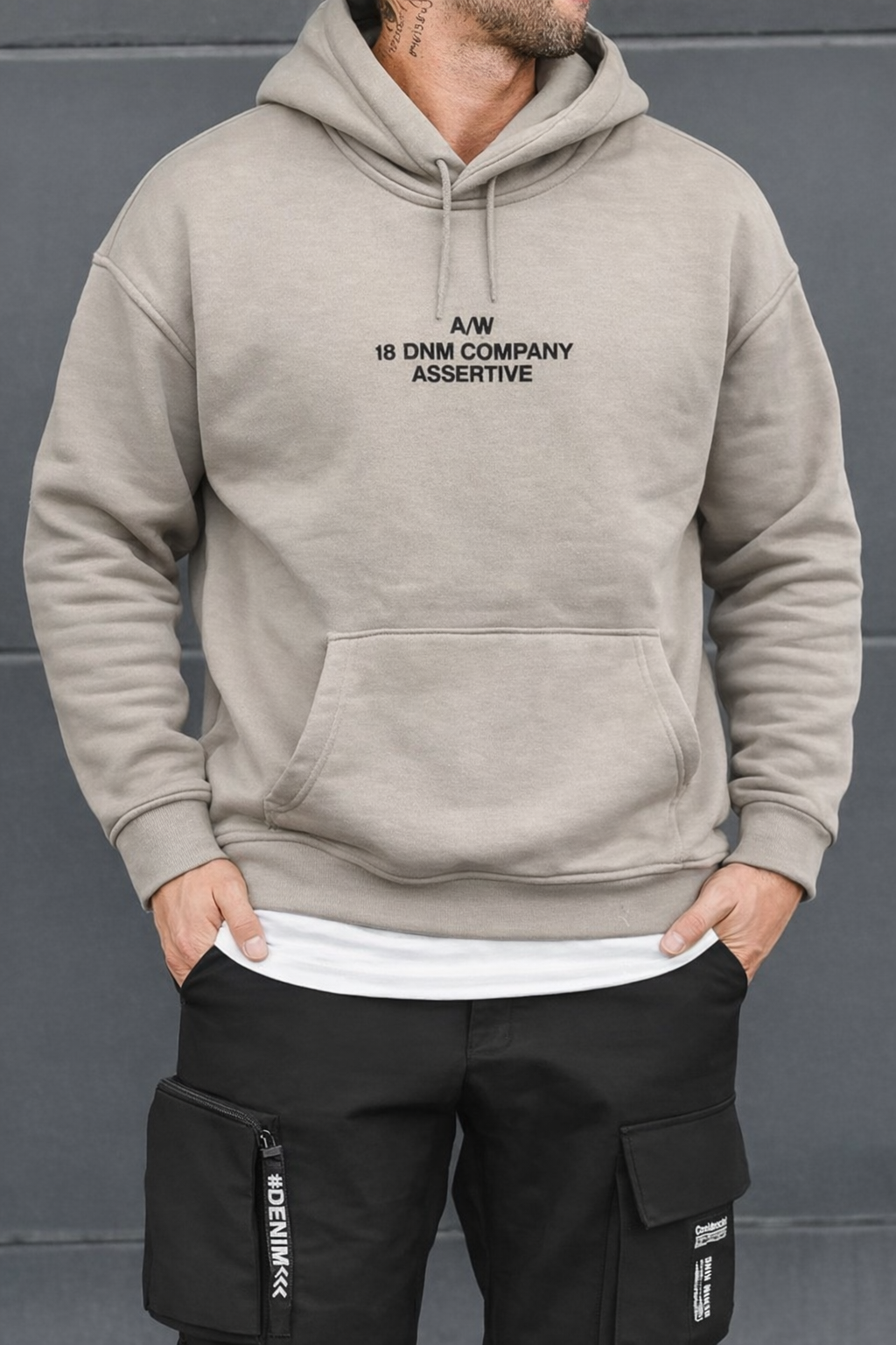 Sweat à capuche imprimé beige