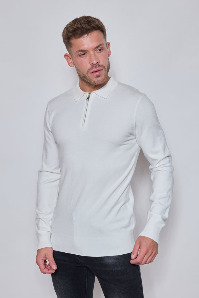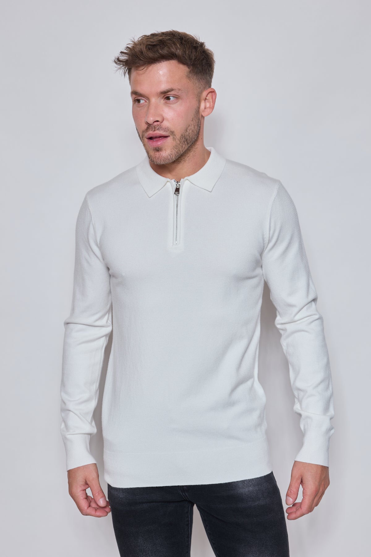 Pull Homme Zippé Col Polo – Maille Fine Confortable