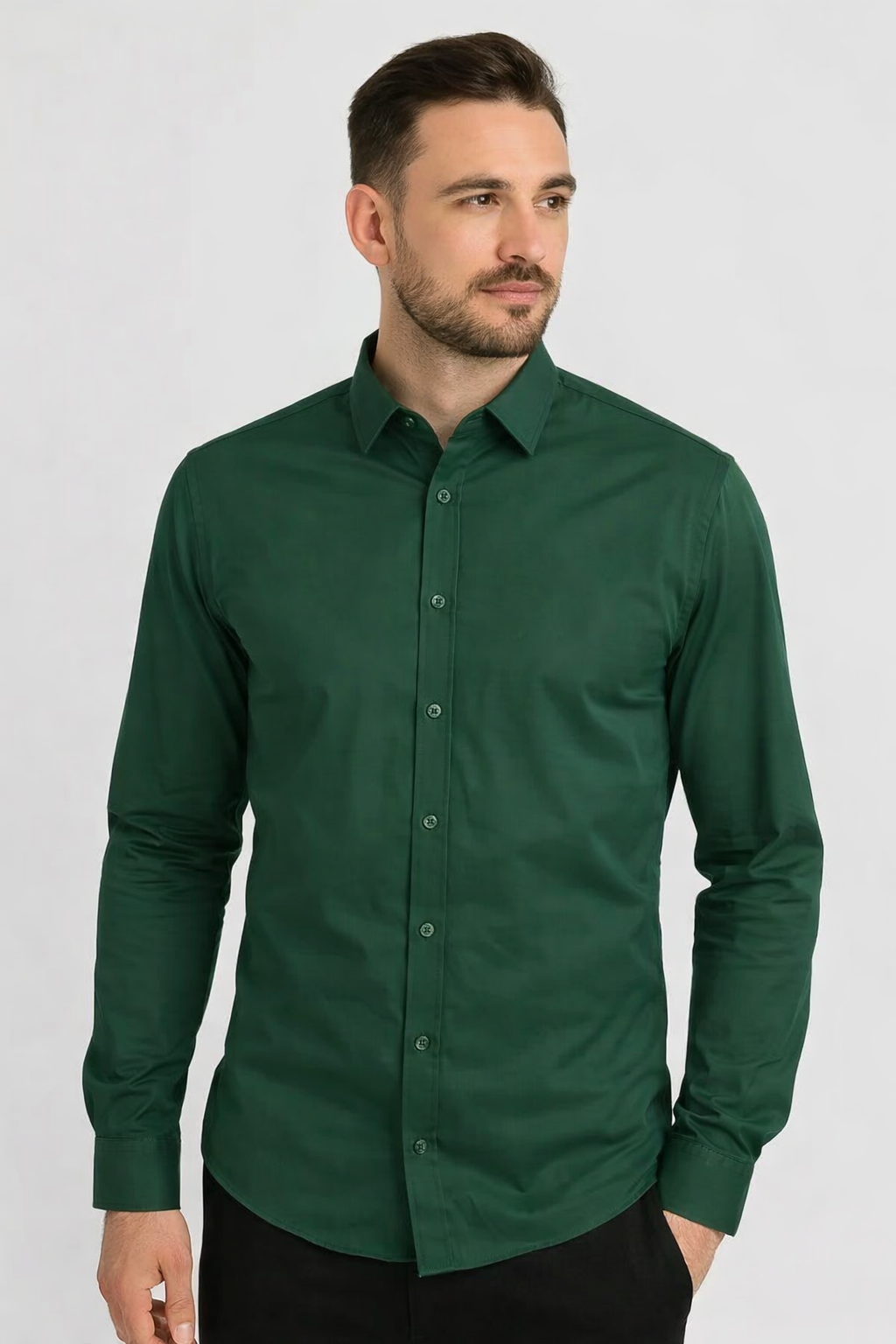 Élégante et moderne, cette chemise verte apporte une touche de caractère à votre tenue tout en conservant une allure sophistiquée. Sa teinte profonde et raffinée s’adapte parfaitement aux looks professionnels comme aux occasions habillées.